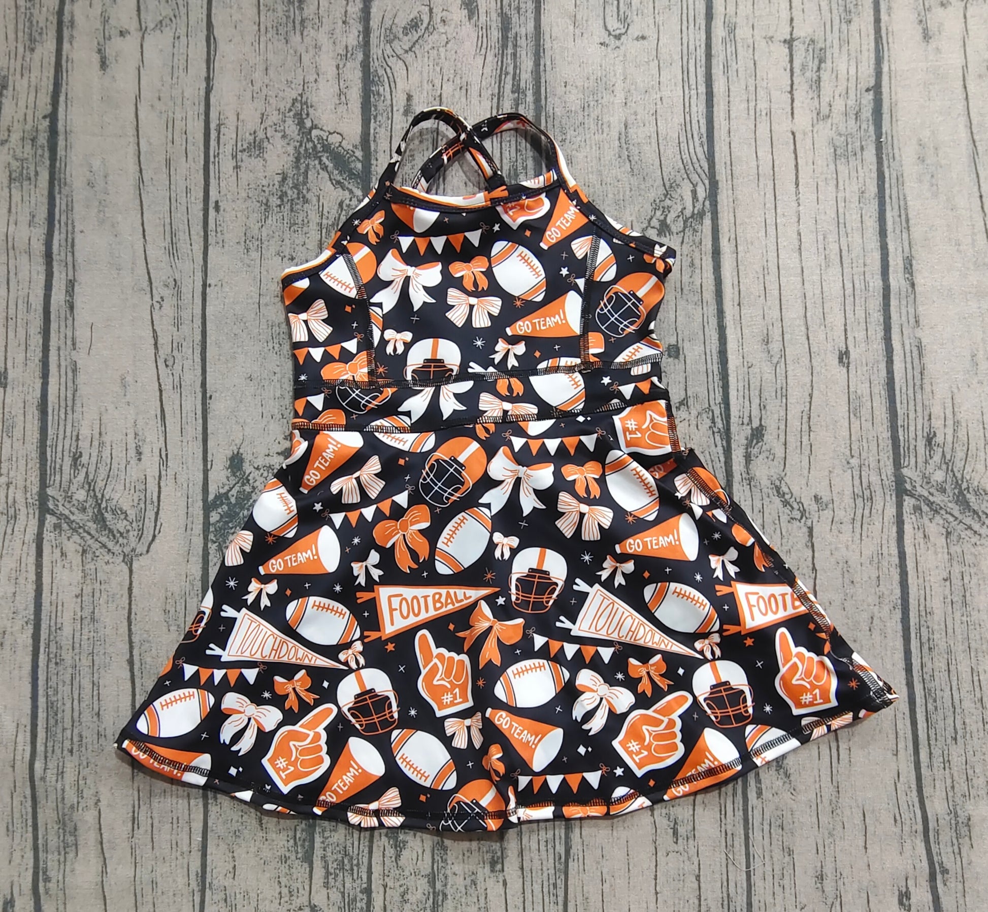 Baby Girls Dress Strap Bows Footballs Plaid Shorts Team Yoga Active Knee Length Dresses Preorder GSD2777 8.2