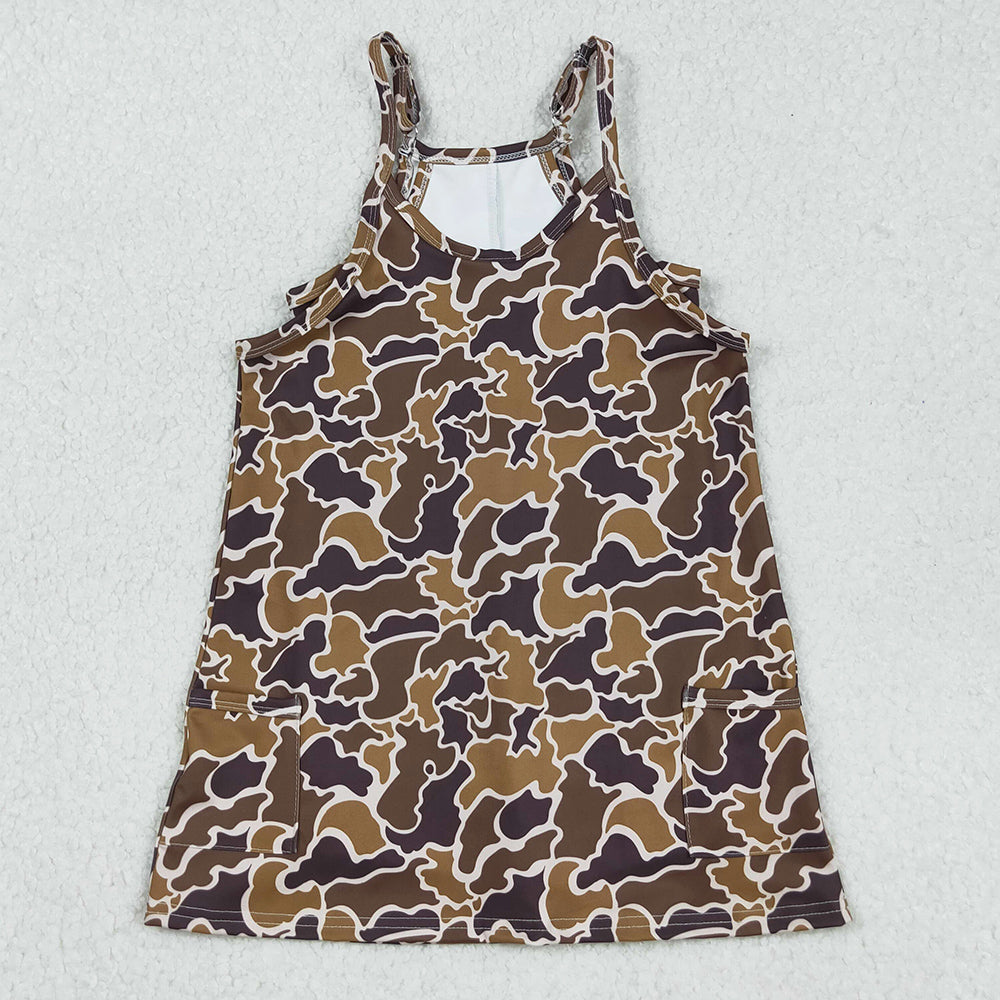 Baby Girls Dress Strap Brown Camo Pockets Yoga Active Knee Length Dresses GSD2722 9.5