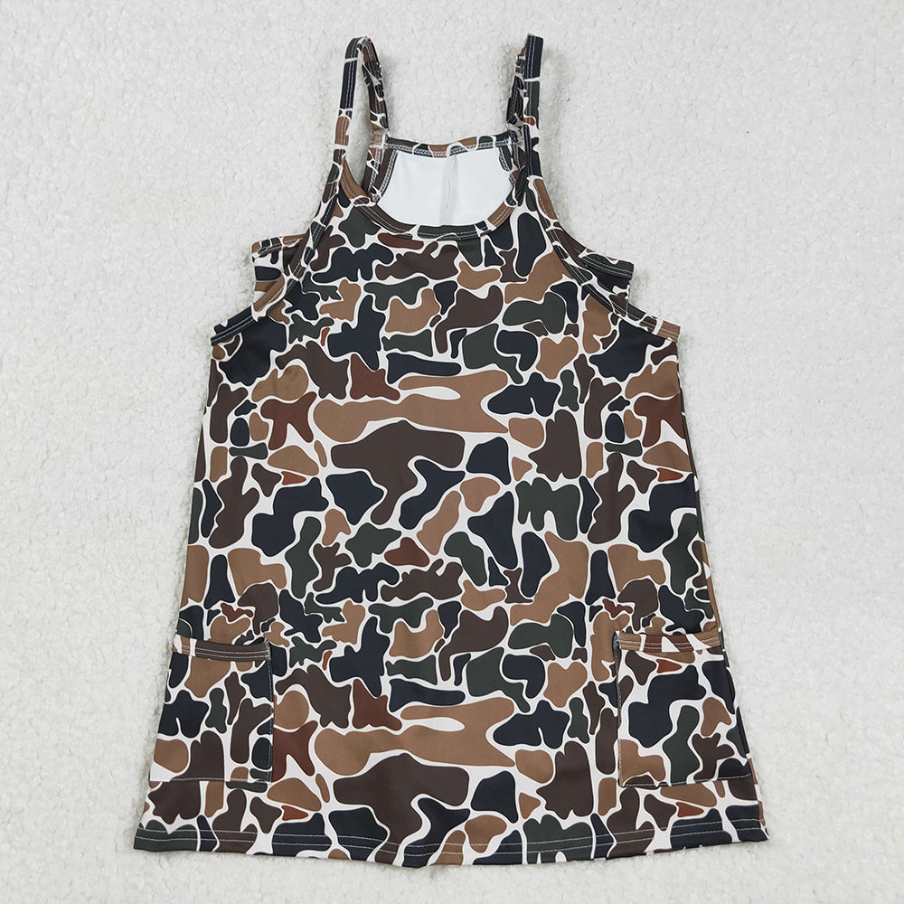 Baby Girls Dress Strap Dark Brown Camo Pockets Knee Length Yoga Dresses GSD2721 9.1