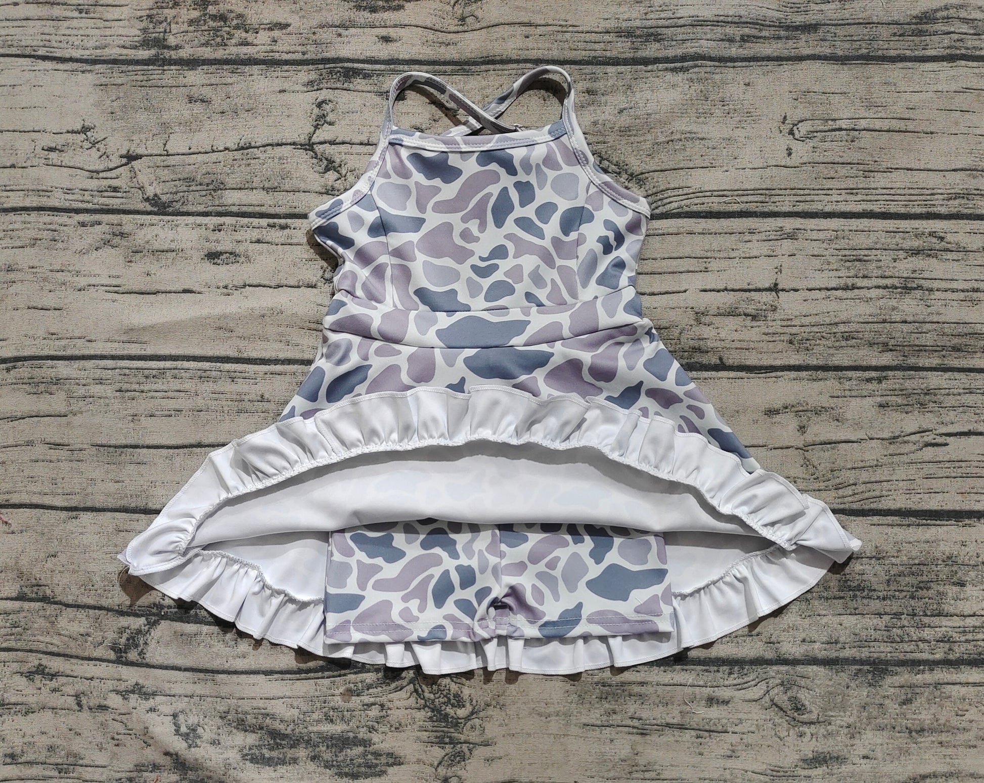 Baby Girls Dress Strap Gray Camo Yoga Ruffle Knee Length Dresses Preorder GSD2308 3.26