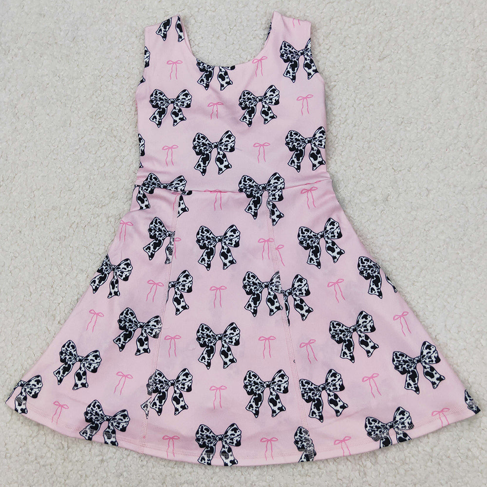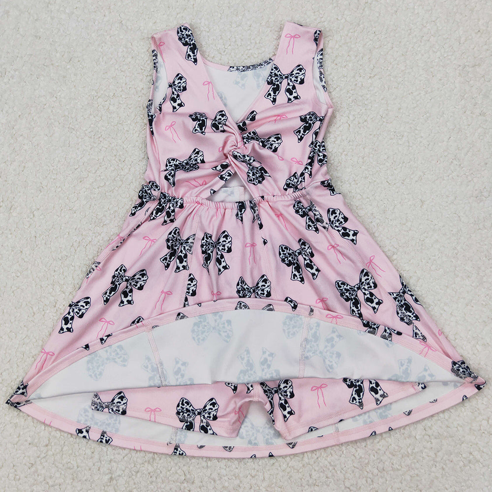 Baby Girls Dress Western Cow Print Bow Sleeveless Skort Knee Length Dresses GSD1853