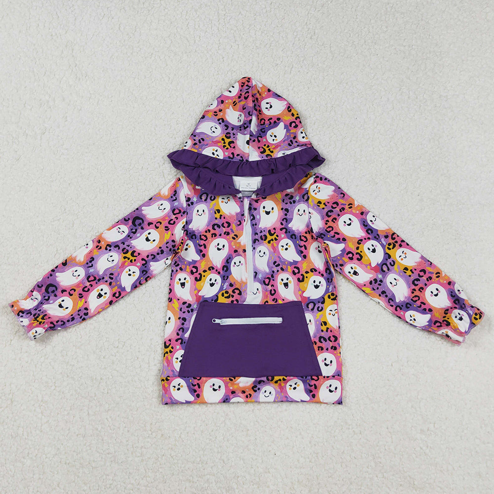 Baby Girls Hoodies Leopard Ghost Pocket Zipper Halloween Hoodies Tops GT1155 9.1