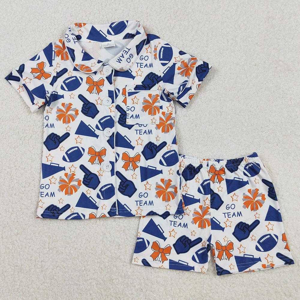 Baby Girls Pajamas Cheer Navy Football Button Top Shorts Sleepwear Sets GSSO2675 9.2