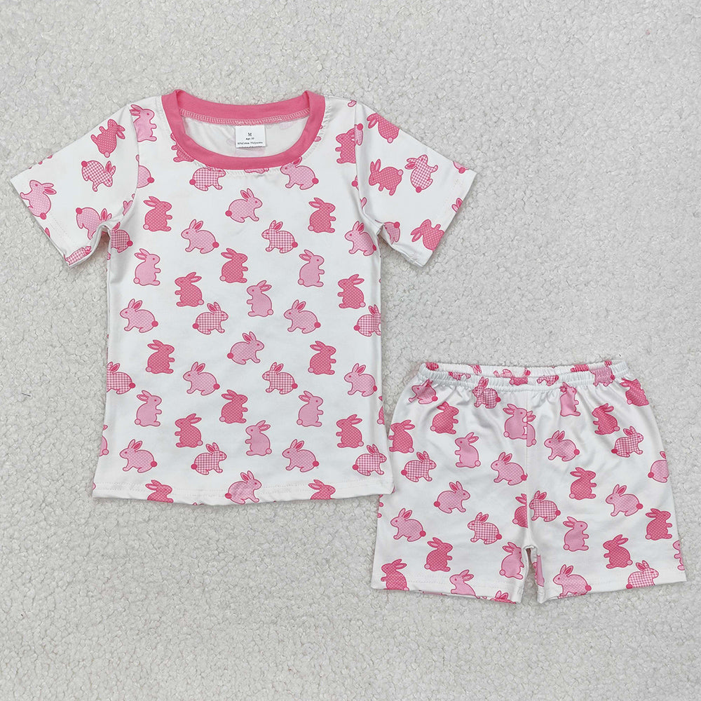 Baby Girls Pajamas Easter Pink Rabbits Shirt Shorts Pajamas Sets GSSO1700