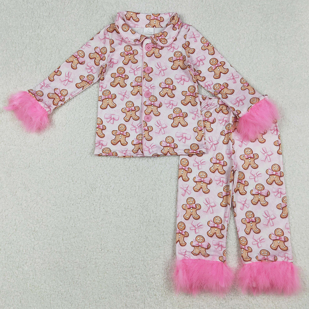 Baby Girls Pajamas Pink Fur Gingerbread Button Top Pants Christmas Pajamas Sets GLP2374 9.9
