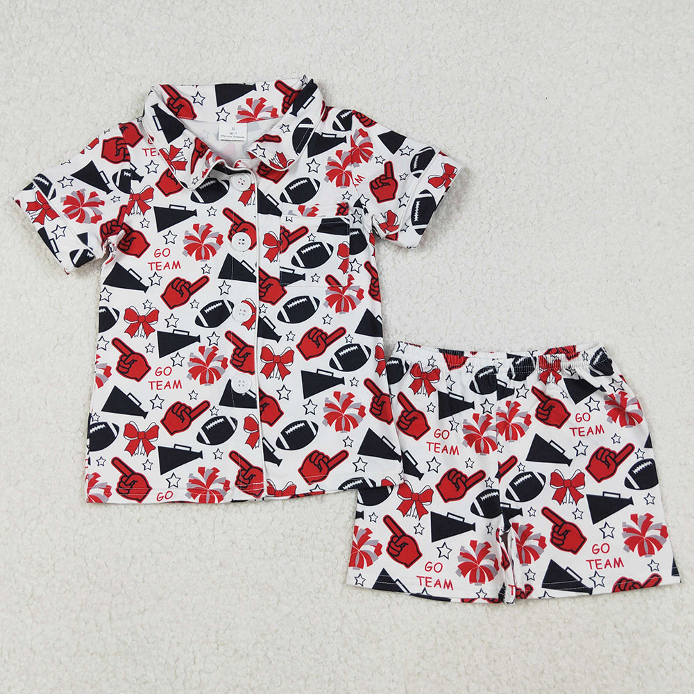 Baby Girls Pajamas Team Black Stars Football Button Top Shorts Pajamas Sets GSSO2674 9.20