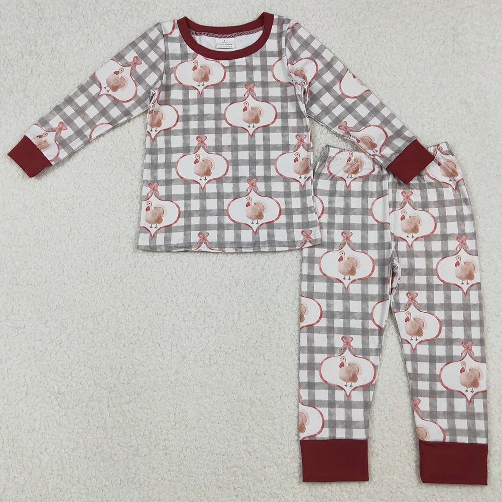 Baby Girls Pajamas Turkey Checked Top Pant Thanksgiving Sleepwear Sets GLP2885 10.2