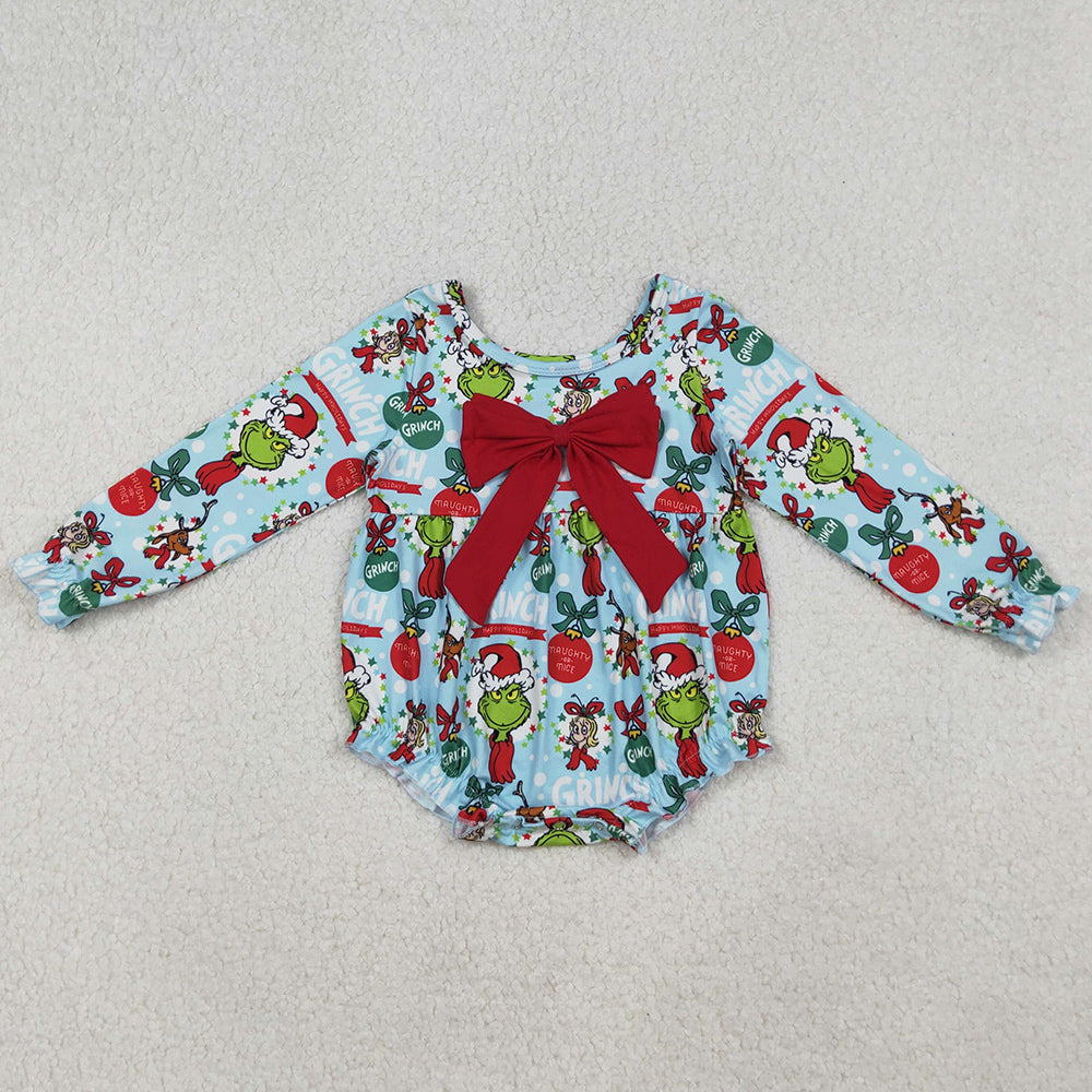 Baby Girls Rompers Christmas Green Face Holly Ruffle Rompers LR2575 9.13