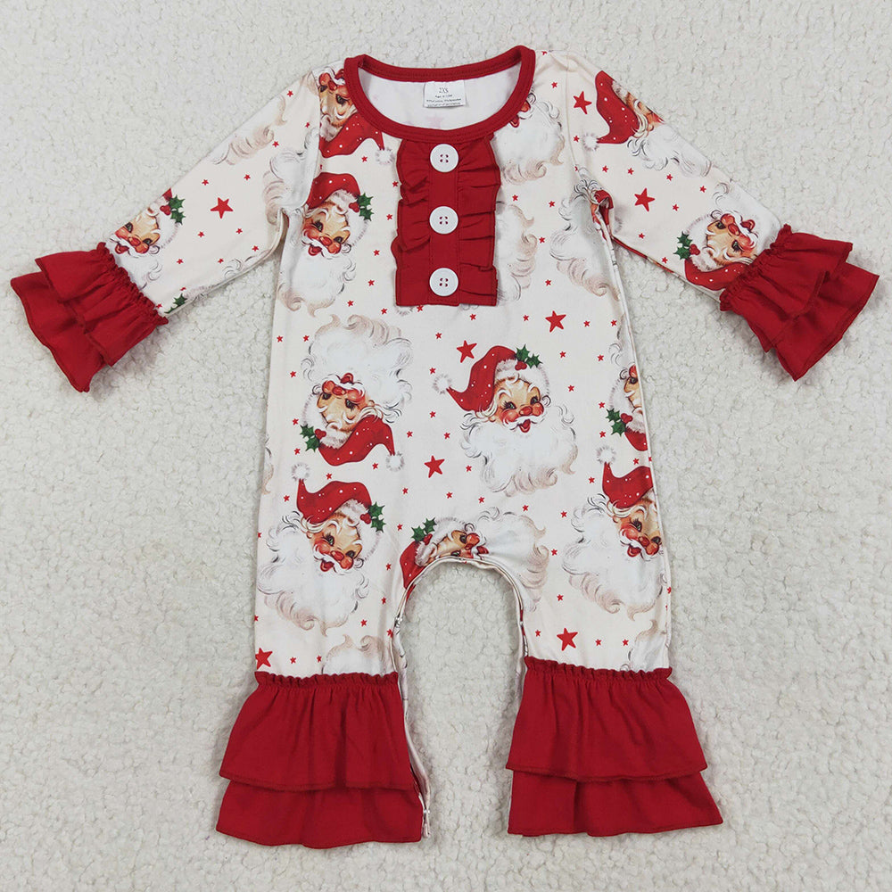 Baby Girls Rompers Christmas Long Sleeves Santa Stars Button Ruffle Rompers LR2395 8.5