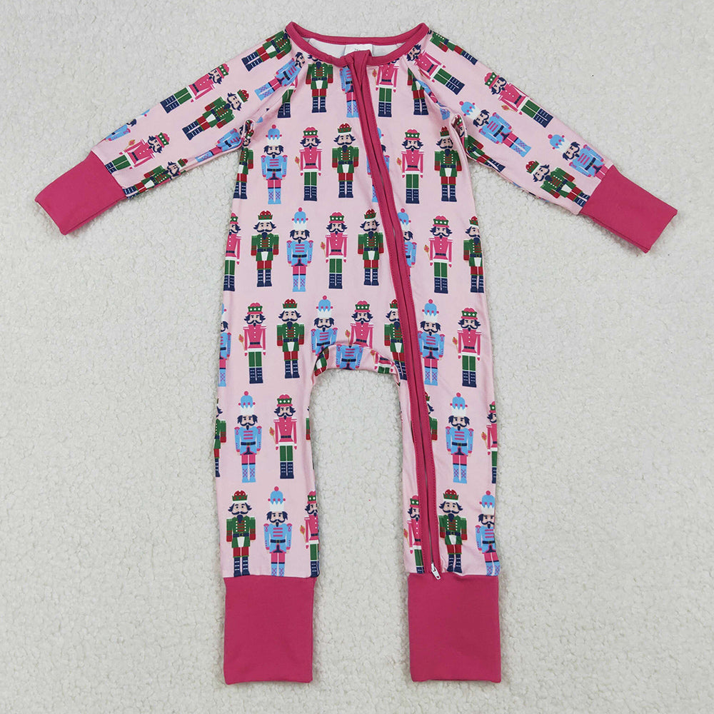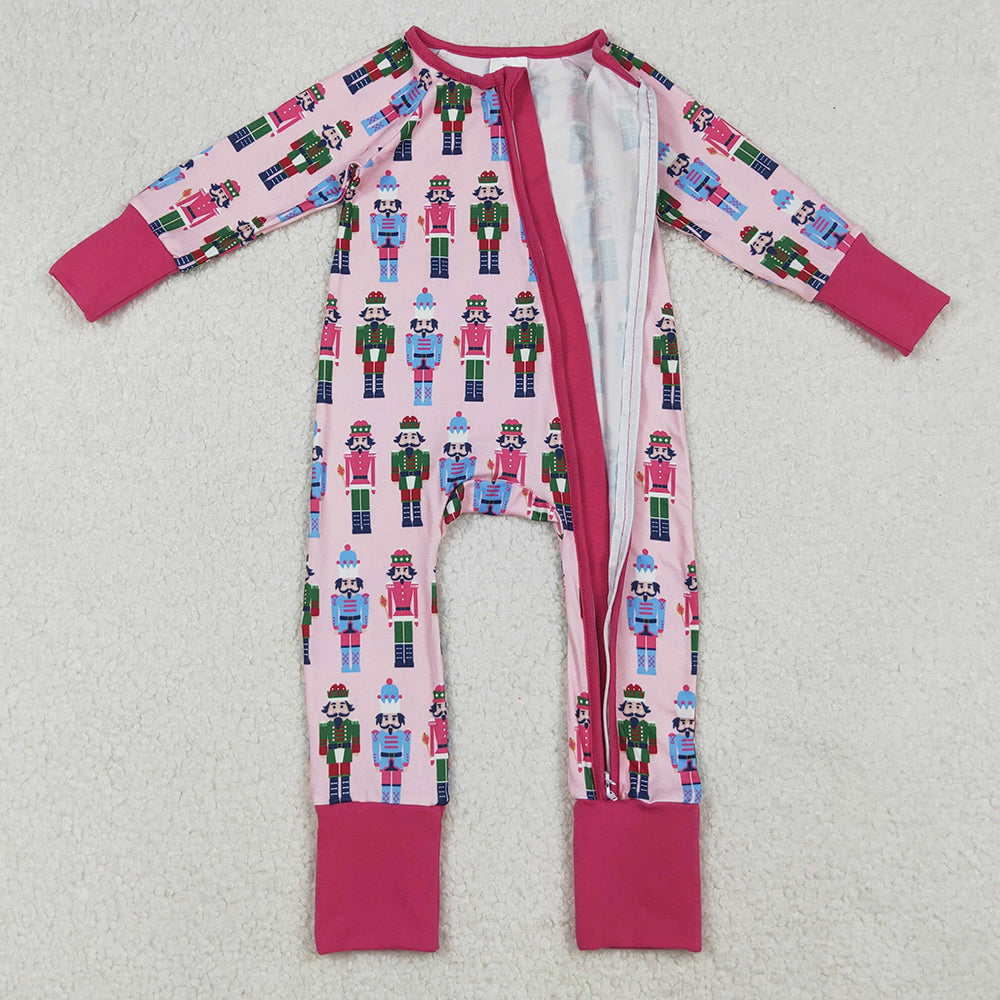 Baby Girls Rompers Christmas Soldiers Pink Zipper Footie Rompers LR2598 9.6