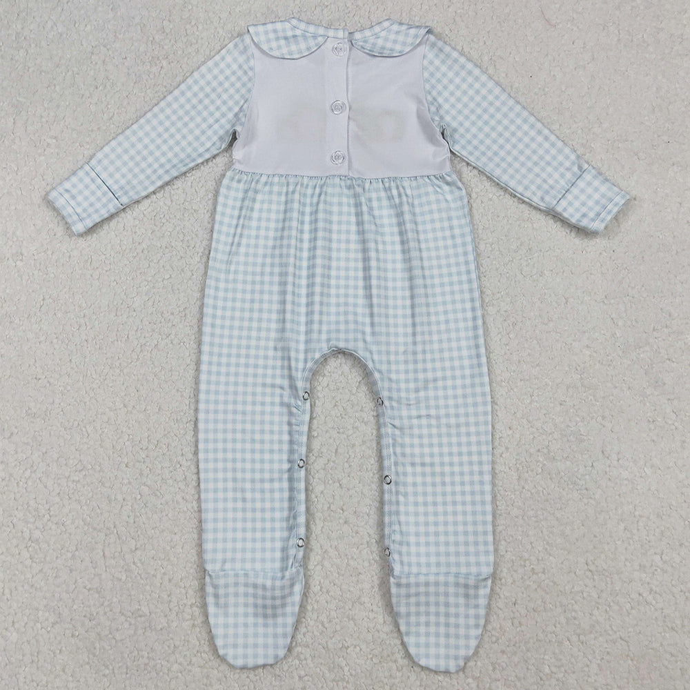 Baby Girls Rompers Embroidery Pumpkins Blue Plaid Fall Footed Rompers LR2560 9.13