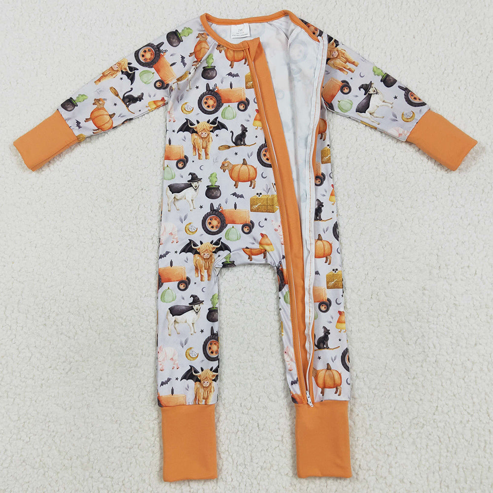 Baby Girls Rompers Farm Bats Pumpkins Halloween Zipper Footie Rompers LR2444 8.9
