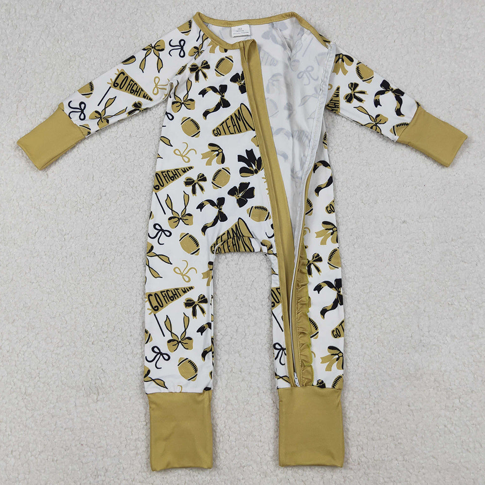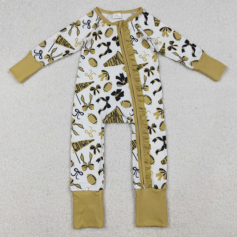 Baby Girls Rompers Golden Bows Footballs Ruffle Zipper Team Rompers LR2515 9.9