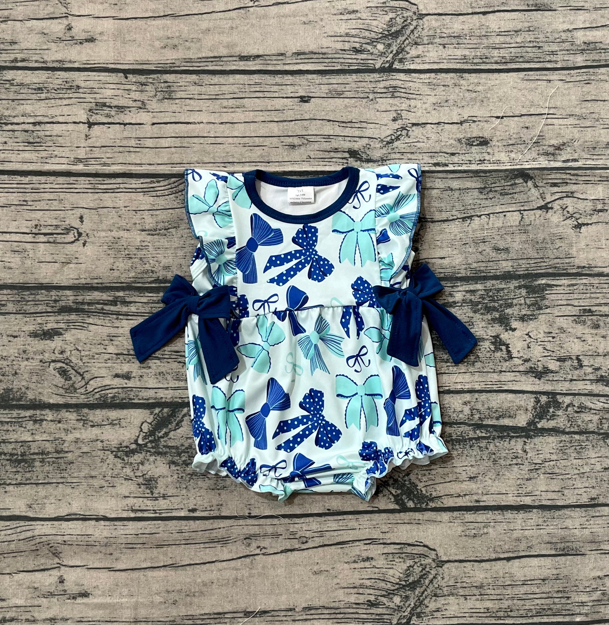 Baby Girls Rompers Hot Blue Flutter Sleeves Bows Ruffle Rompers Preorder SR3121 8.2