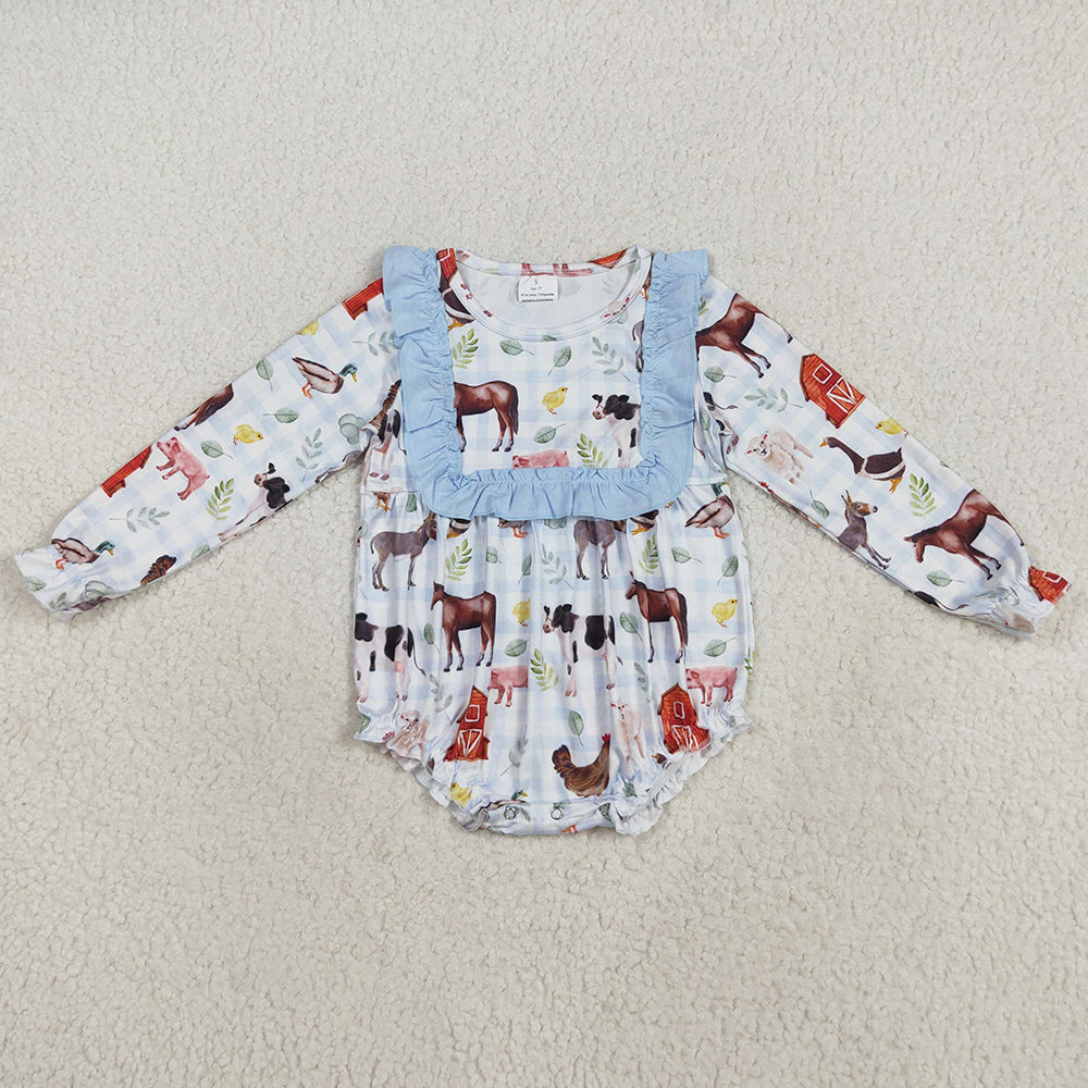 Baby Girls Rompers Long Ruffle Sleeves Farm Houses Chicks Rompers LR2362 8.6