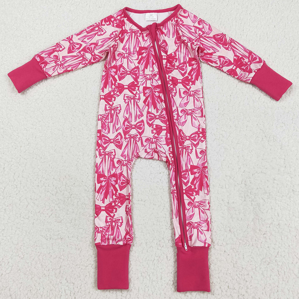 Baby Girls Rompers Long Sleeves Pink Bows Zipper Footie Rompers LR2365 8.5