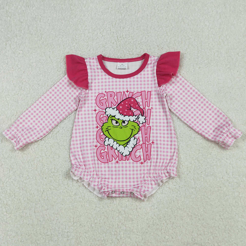 Baby Girls Rompers Pink Checked Green Face Christmas Ruffle Sleeve Rompers LR2554 10.1