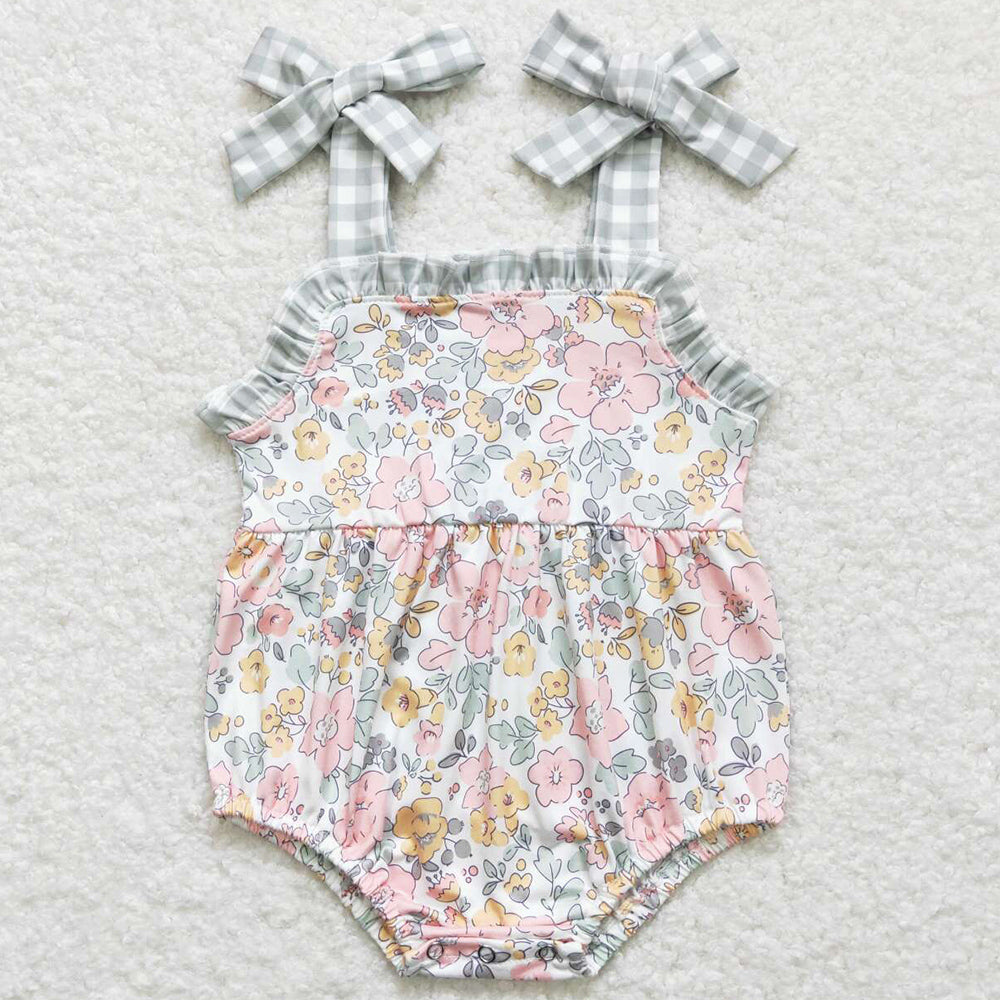 Baby Girls Rompers Pink Green Flowers Straps Summer Girl Rompers SR0921
