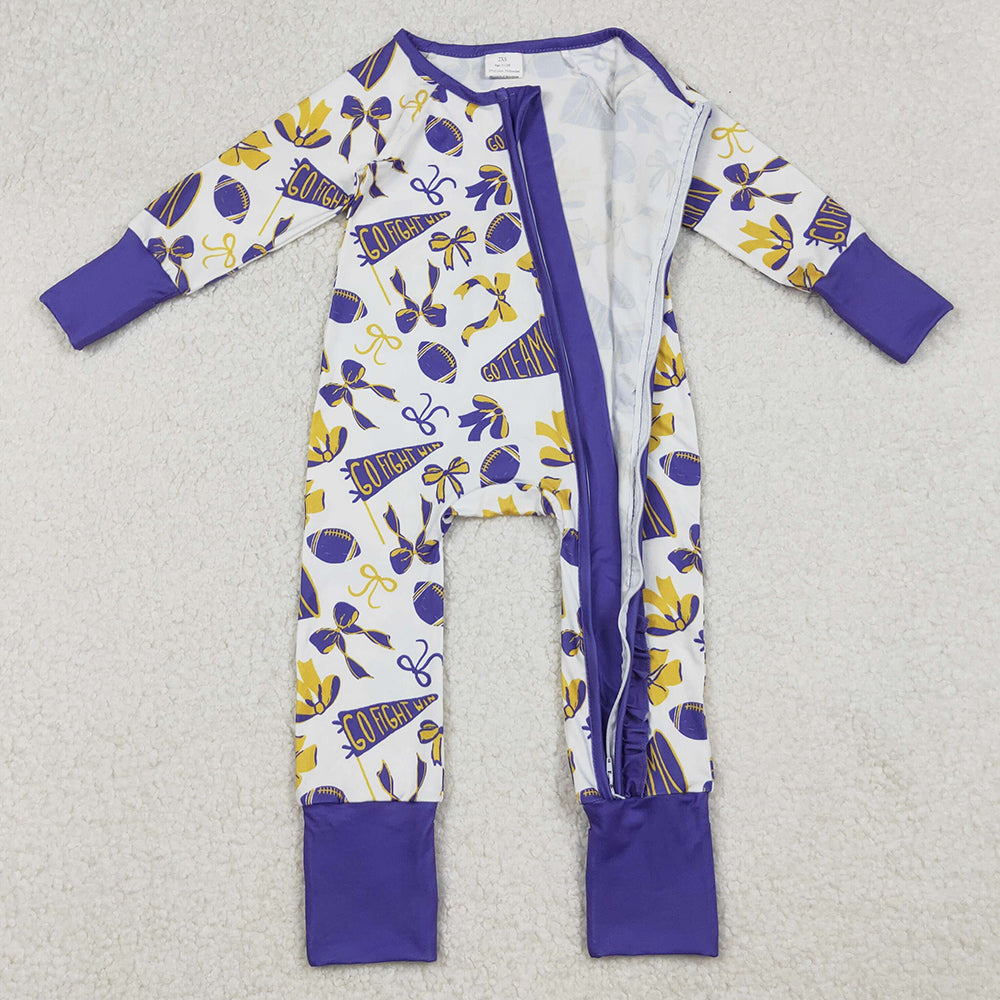 Baby Girls Rompers Team Purple Bows Footballs Ruffle Zipper Footie Rompers LR2513 10.1
