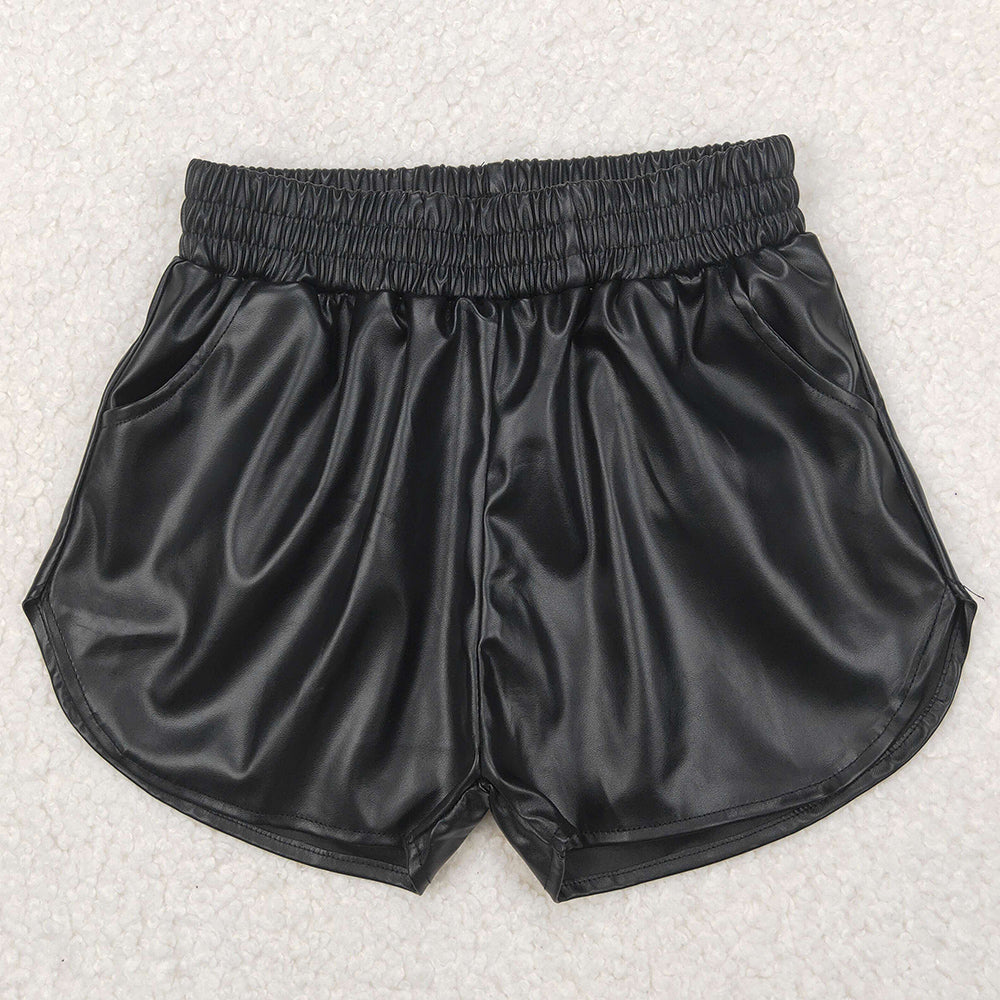 Baby Girls Shorts Black Pocket Leather Elastic Bottom Shorts SS0413 3.25