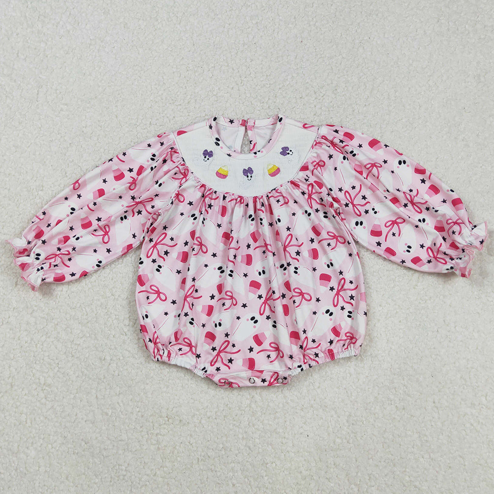 Baby Girls Smocked Rompers Halloween Pink Bows Ghosts Candy Ruffle Rompers LR2216 9.1