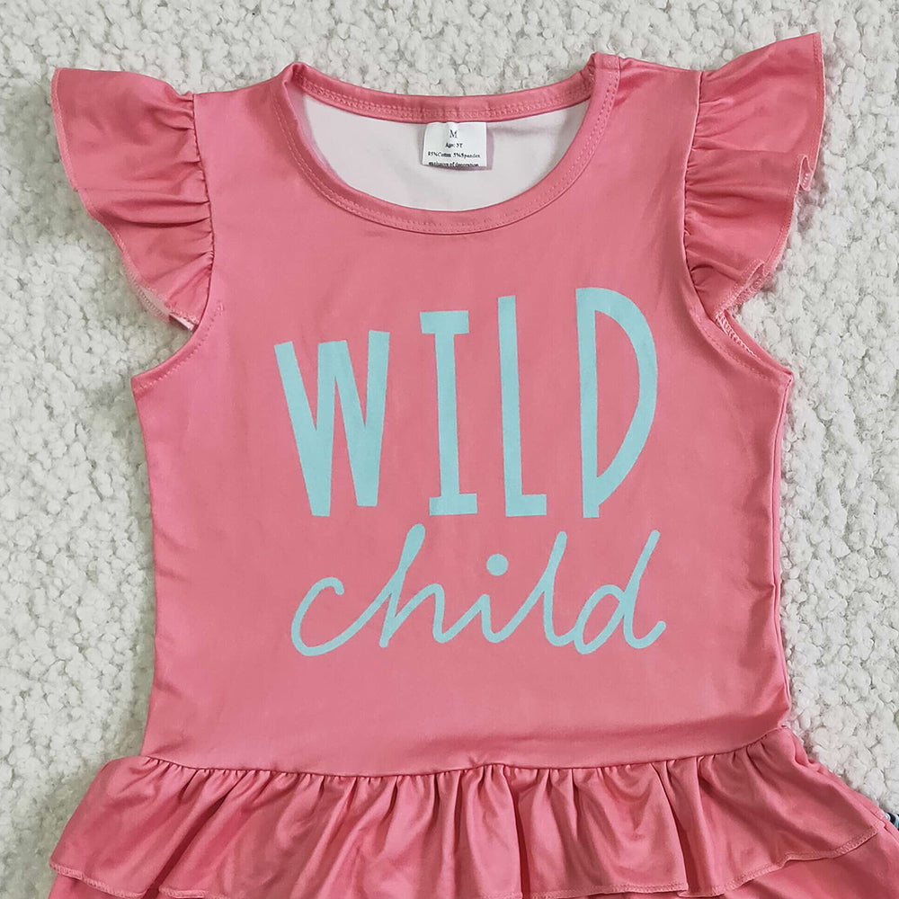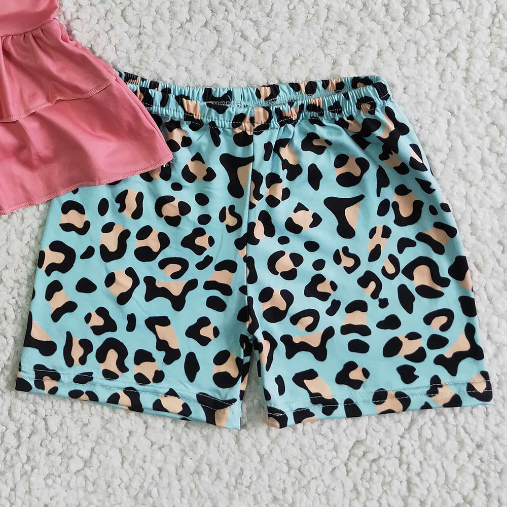 Baby Girls Summer Clothes Set Wild Child Double Tunic Top Ruffle Leopard Shorts Set GSSO0036