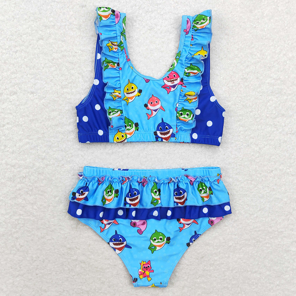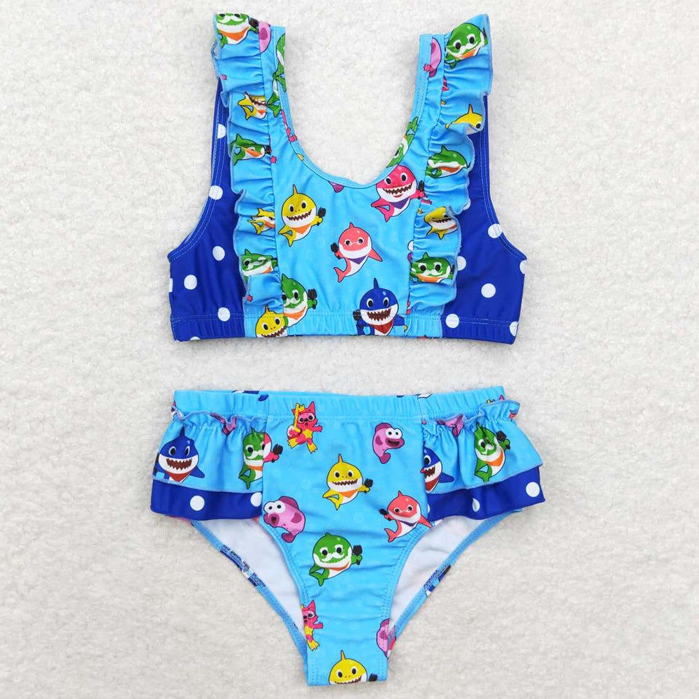 Baby Girls Swimsuits Summer Blue 2pcs Ruffle Swimsuits S0280