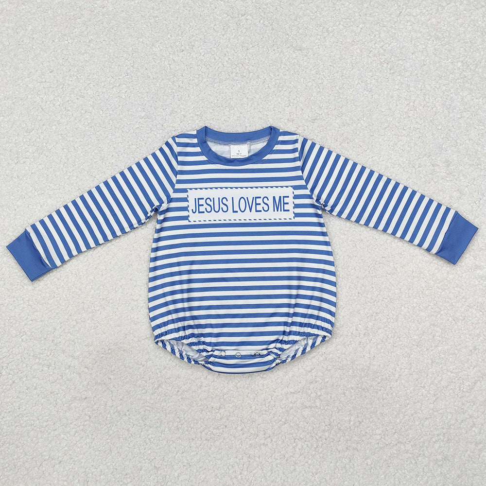 Baby Infant Boys Rompers Blue Stripes Jesus Long Sleeve Rompers LR1556