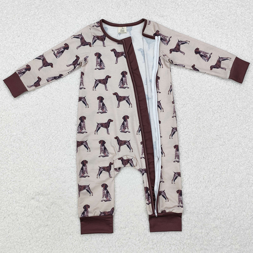 Baby Infant Boys Rompers Brown Dogs Bamboo Long Sleeve Zip Rompers LR1759