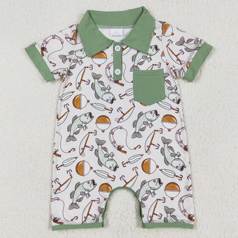 Baby Infant Boys Rompers Fishing Pocket Short Sleeve Rompers SR2472