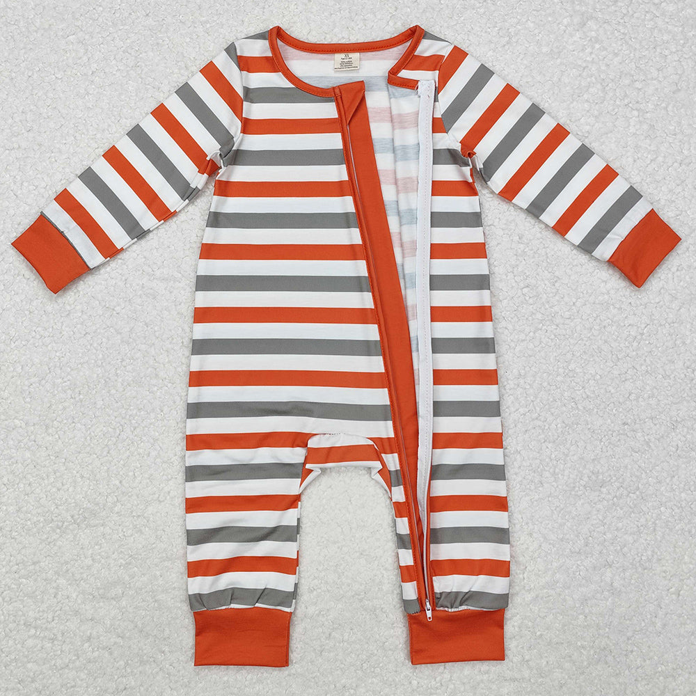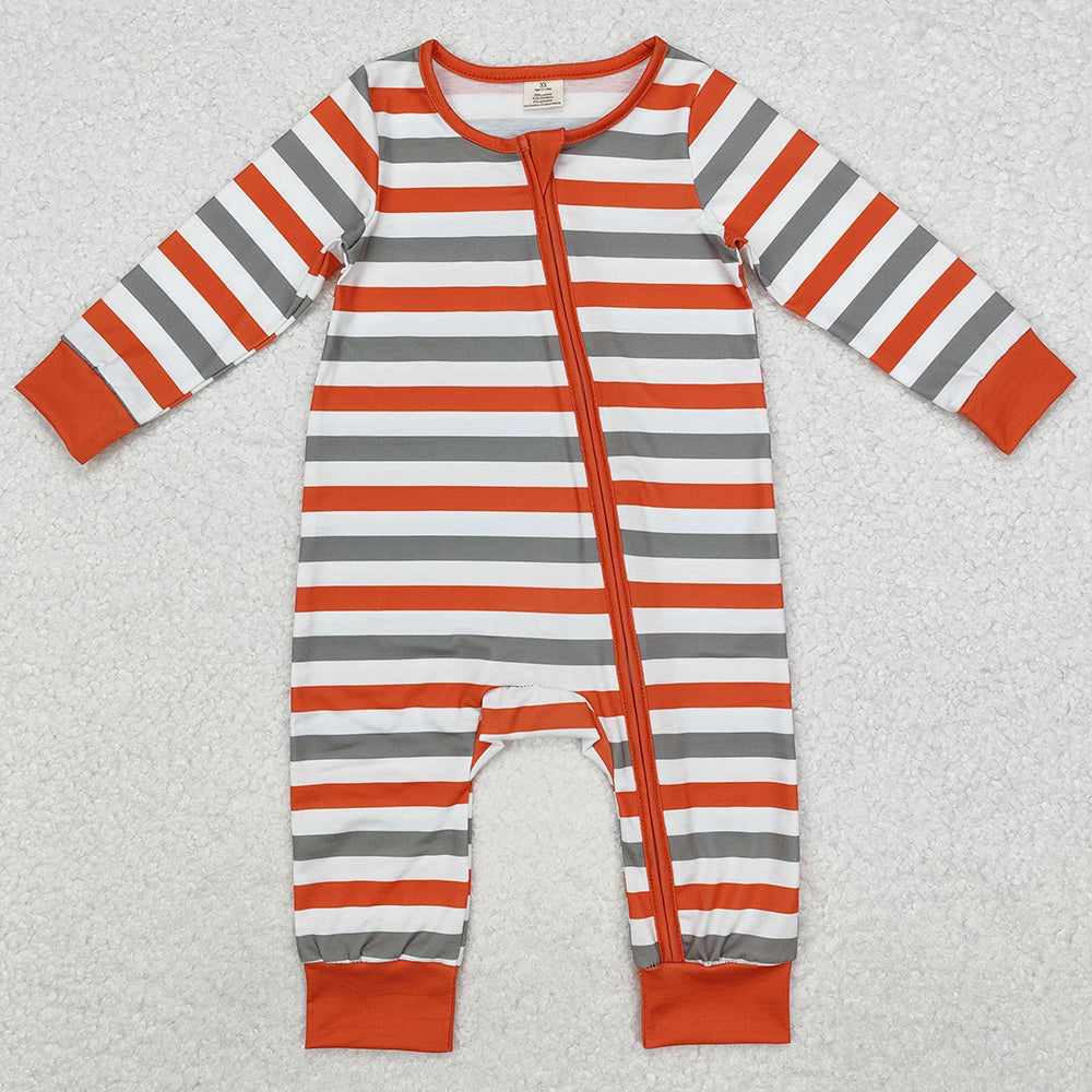 Baby Infant Boys Rompers Orange Stripes Zip Long Sleeve Rompers LR1732