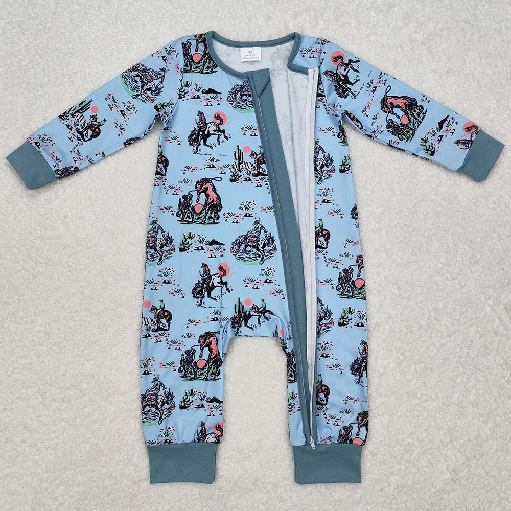 Baby Infant Boys Rompers Western Rodeo Horse Zip Long Sleeve Rompers LR1578
