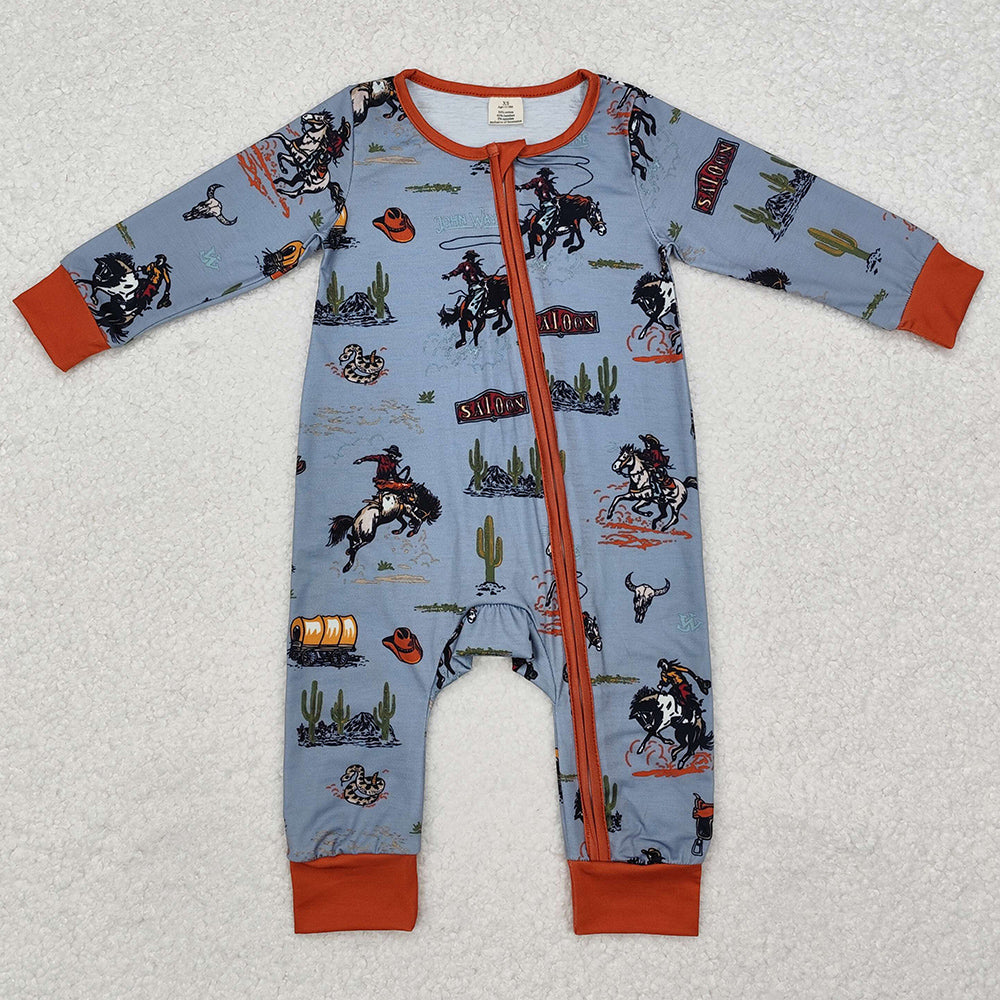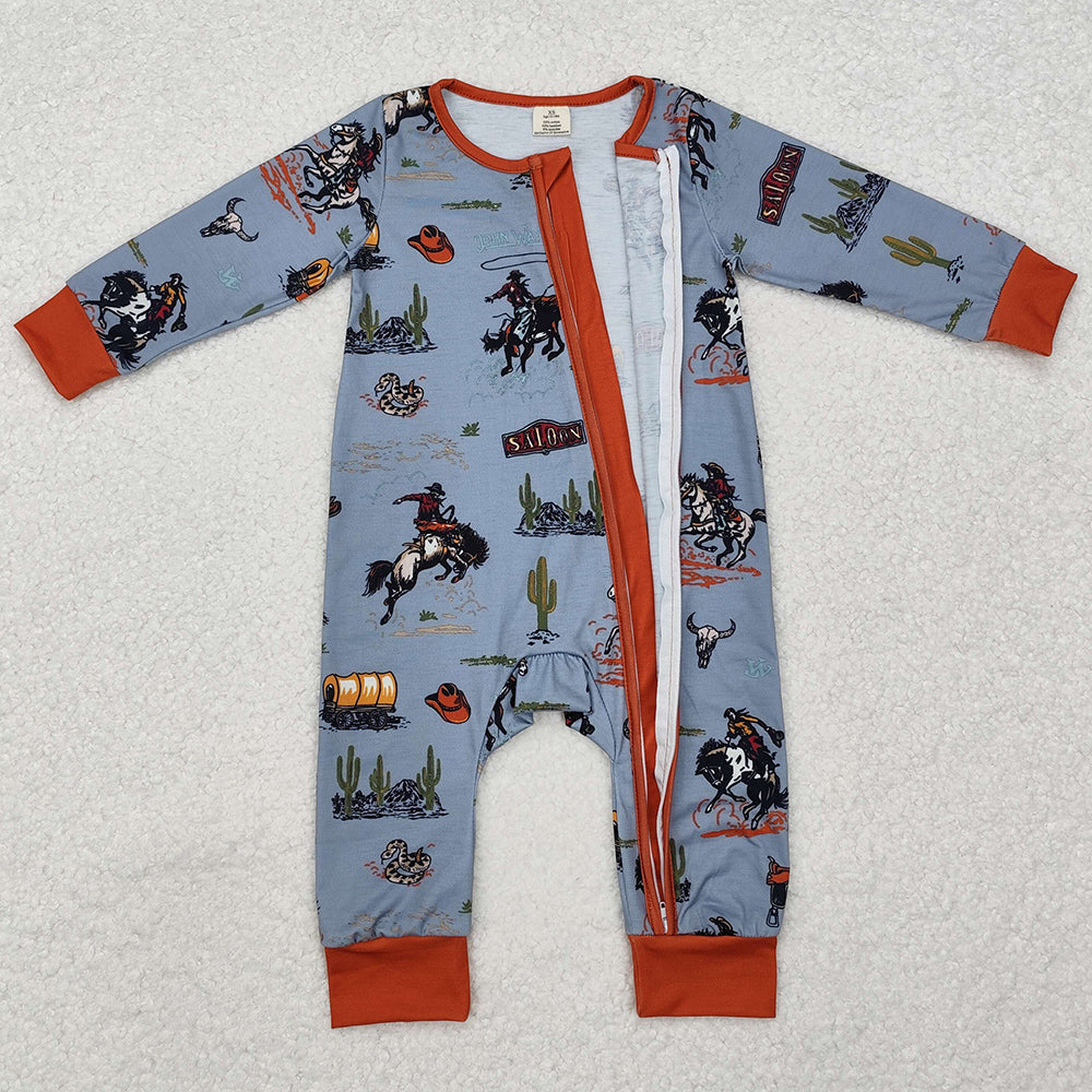 Baby Infant Boys Rompers Western Rodeo Zip Long Sleeve Rompers LR1858