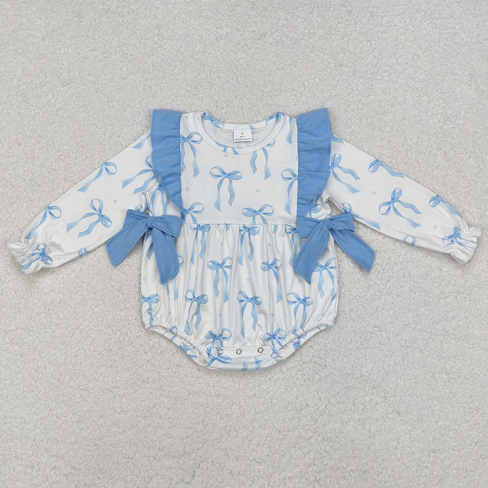 Baby Infant Girls Rompers Blue Bows Long Sleeve Rompers LR2043