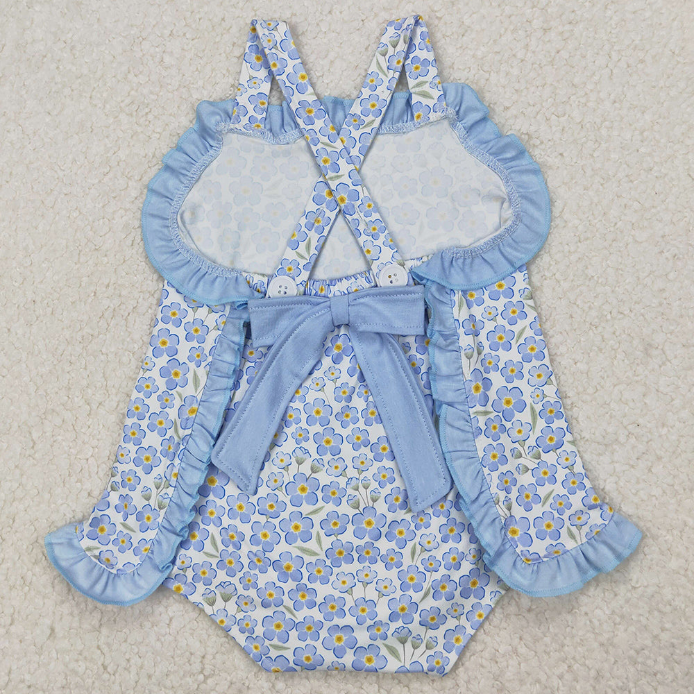 Baby Infant Girls Rompers Blue Flowers Straps Rompers SR2791 3.24