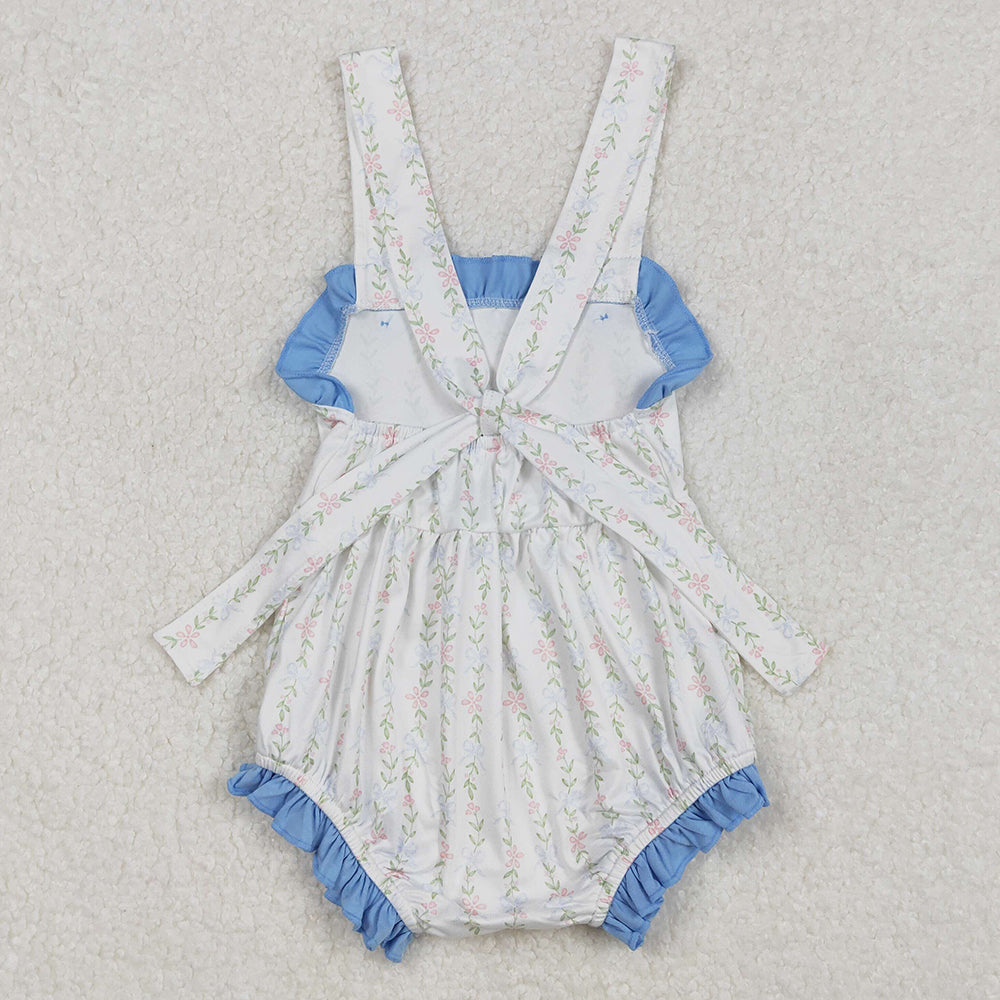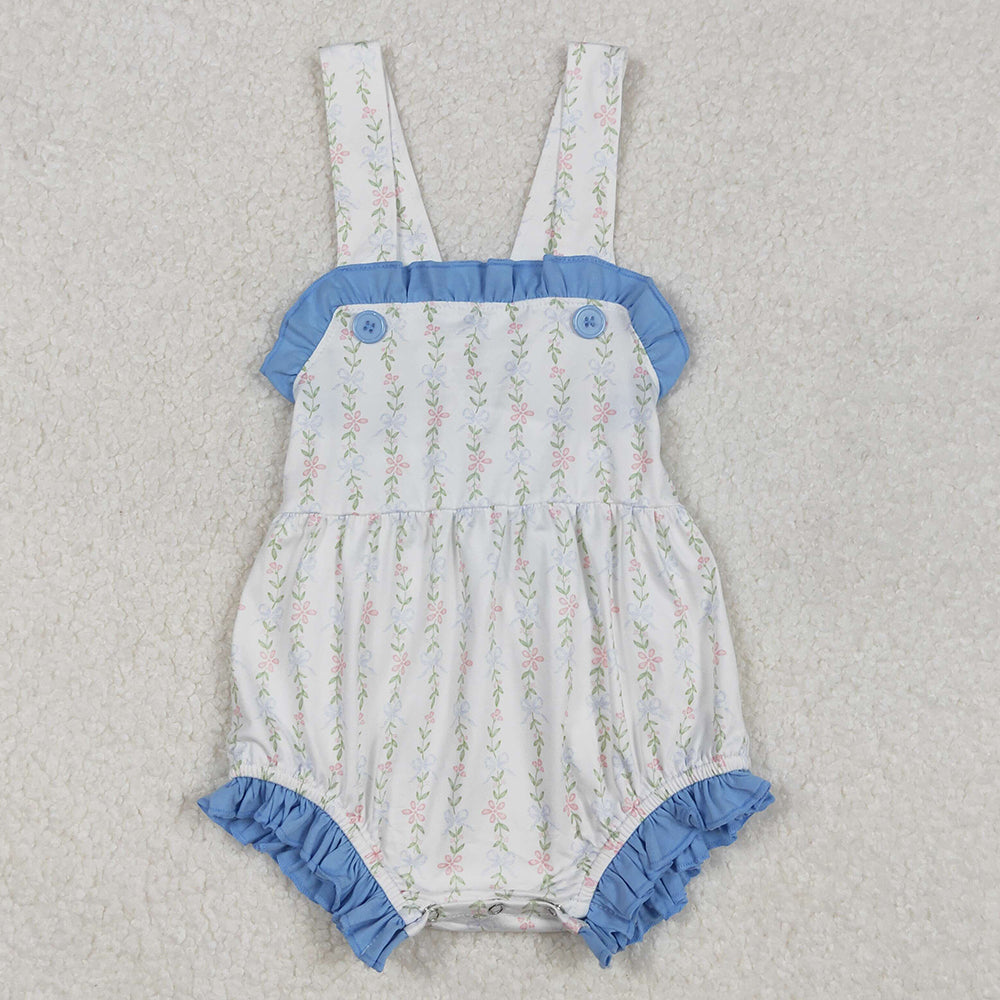 Baby Infant Girls Rompers Blue Ruffle Leaves Straps Rompers SR1478 3.1