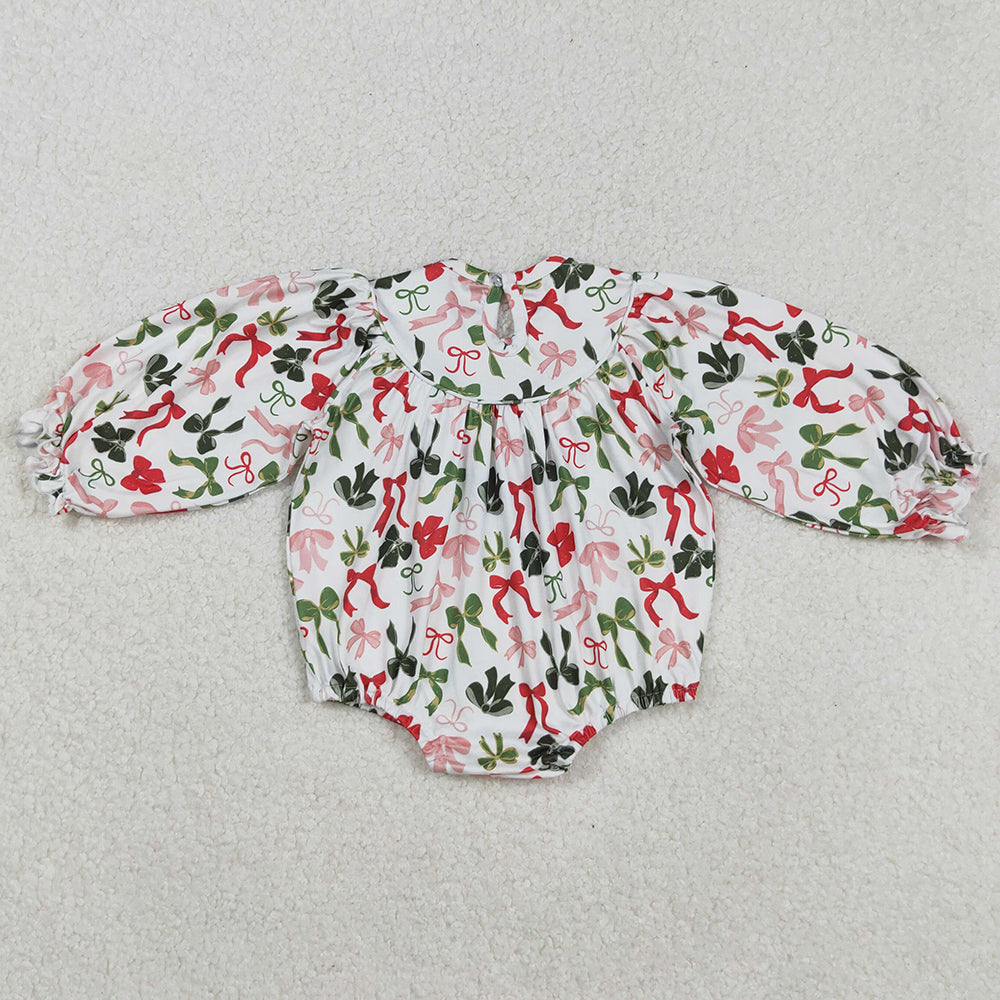 Baby Infant Girls Rompers Christmas Colorful Bows Smocked Rompers LR2185 9.1