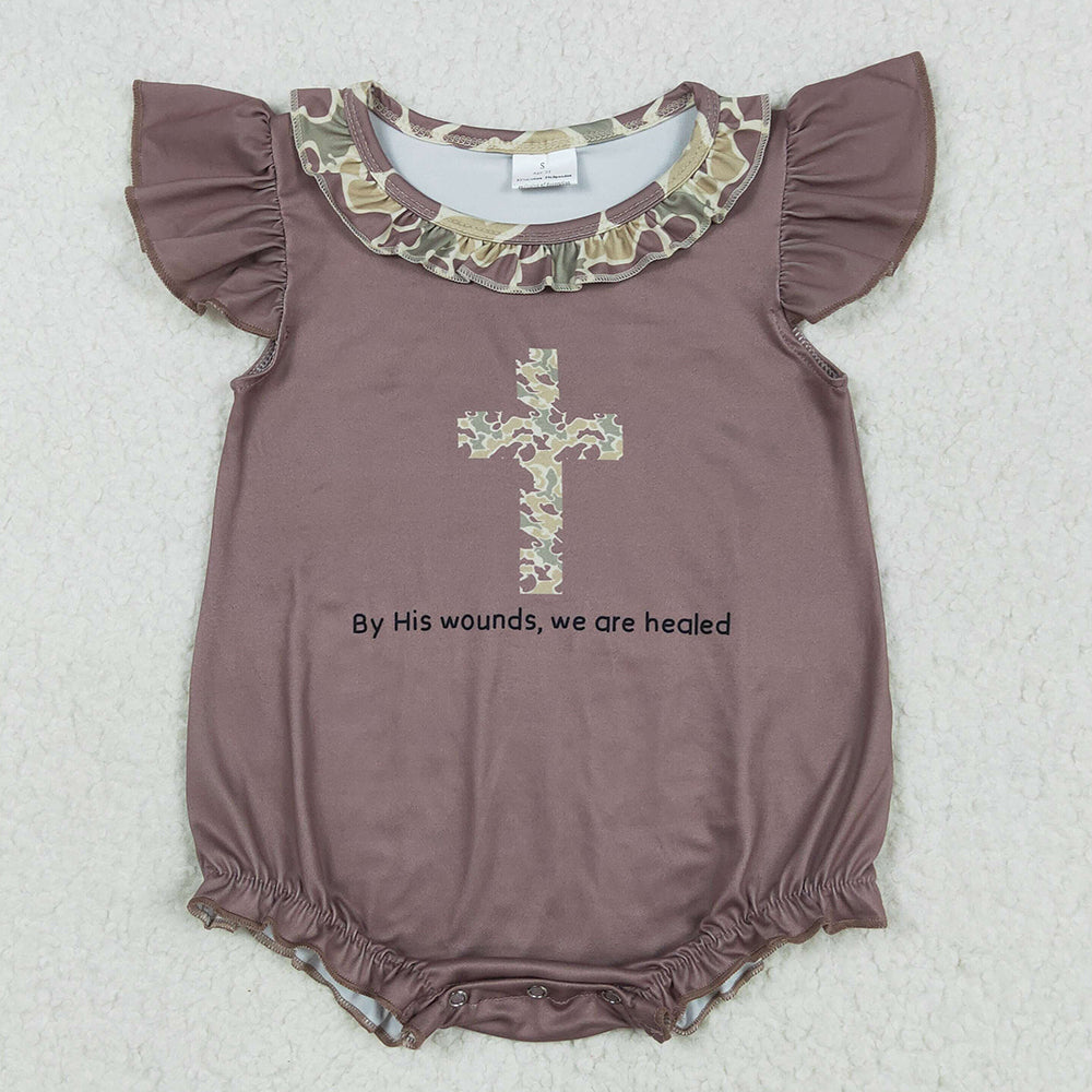 Baby Infant Girls Rompers Easter Camo Cross Flutter Sleeve Rompers SR2310
