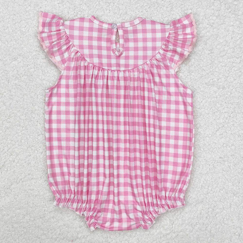 Baby Infant Girls Rompers Easter Rabbits Checkered Smocked Rompers SR2215