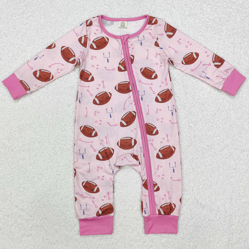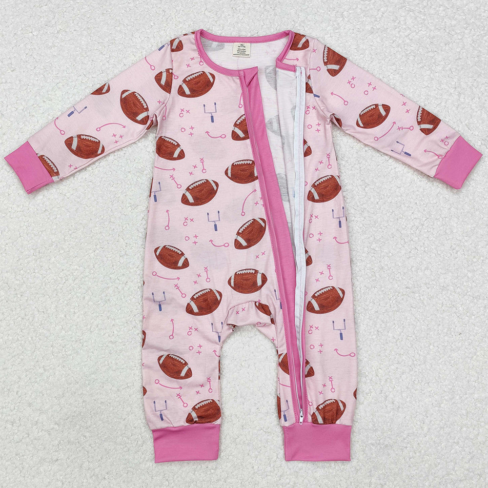 Baby Infant Girls Rompers Football Pink Zip Bamboo Rompers LR1464