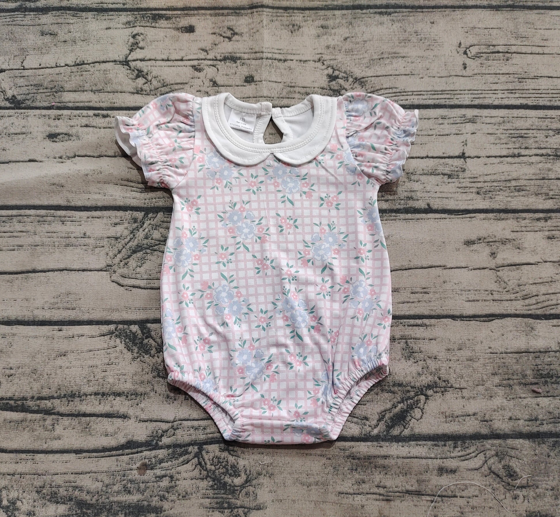 Baby Infant Girls Rompers Pink Checkered Flowers Short Sleeve Rompers preorder SR2878 3.12