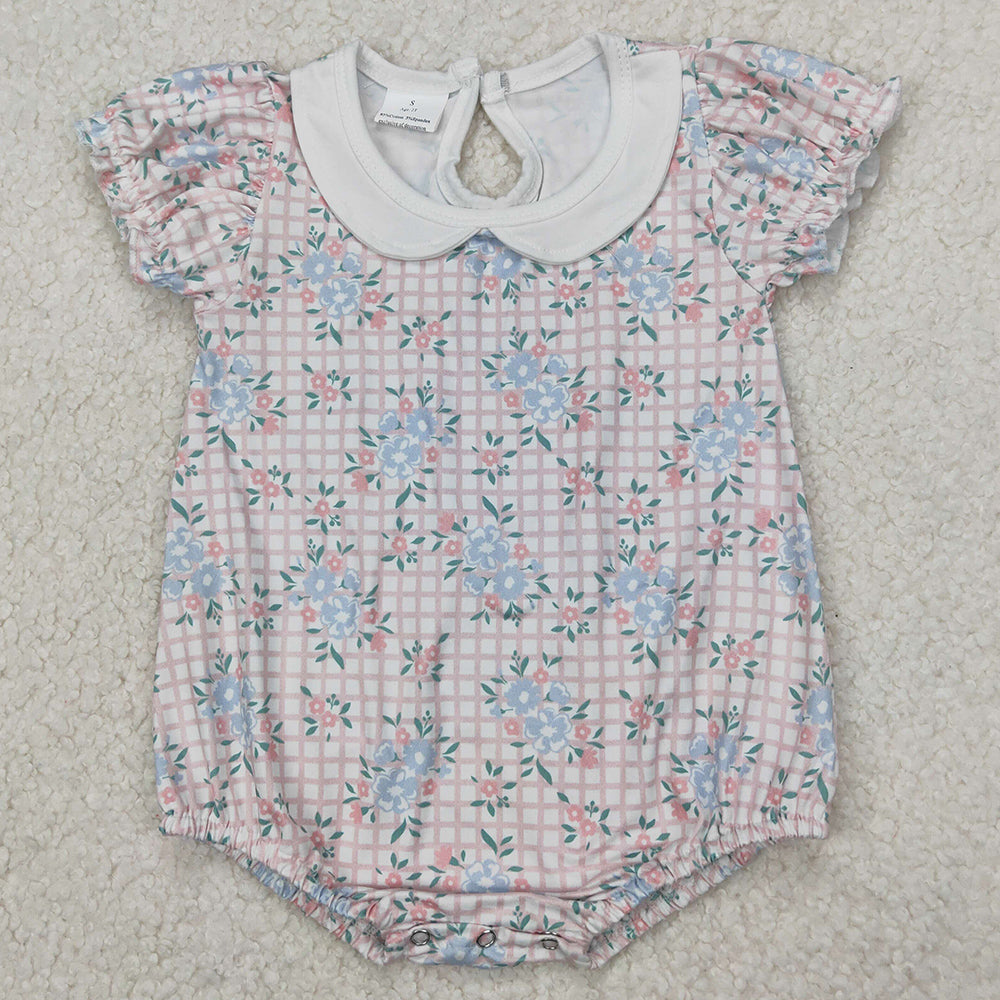 Baby Infant Girls Rompers Pink Checkered Flowers Short Sleeve Rompers SR2878 3.25