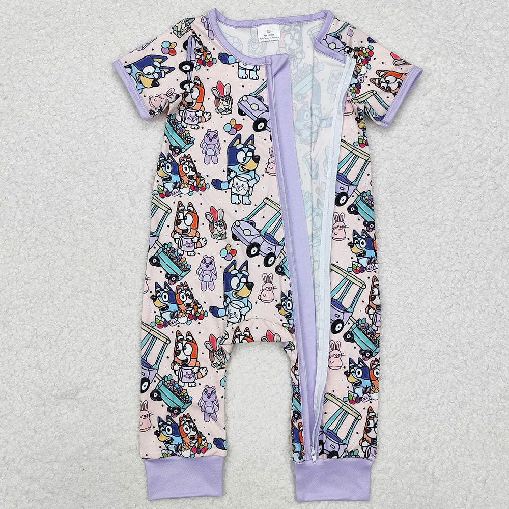 Baby Infant Girls Rompers Purple Dog Easter Rabbits Zip Rompers SR2095