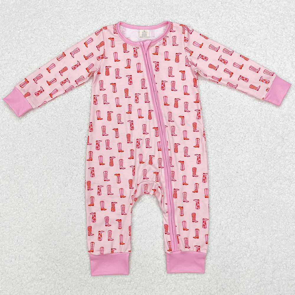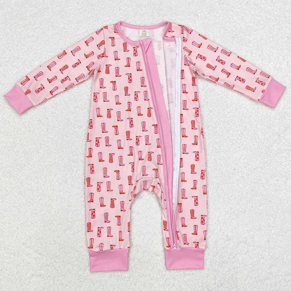 Baby Infant Girls Rompers Western Pink Boots Bamboo Zip Rompers LR1843