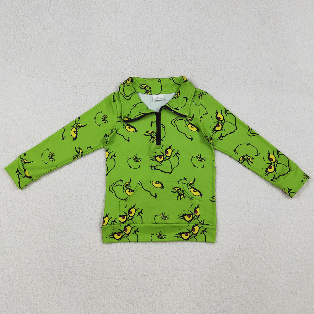 Baby Kids Clothes Tops Green Face Pockets Zipper Christmas Pullovers Tops GT1170 9.13