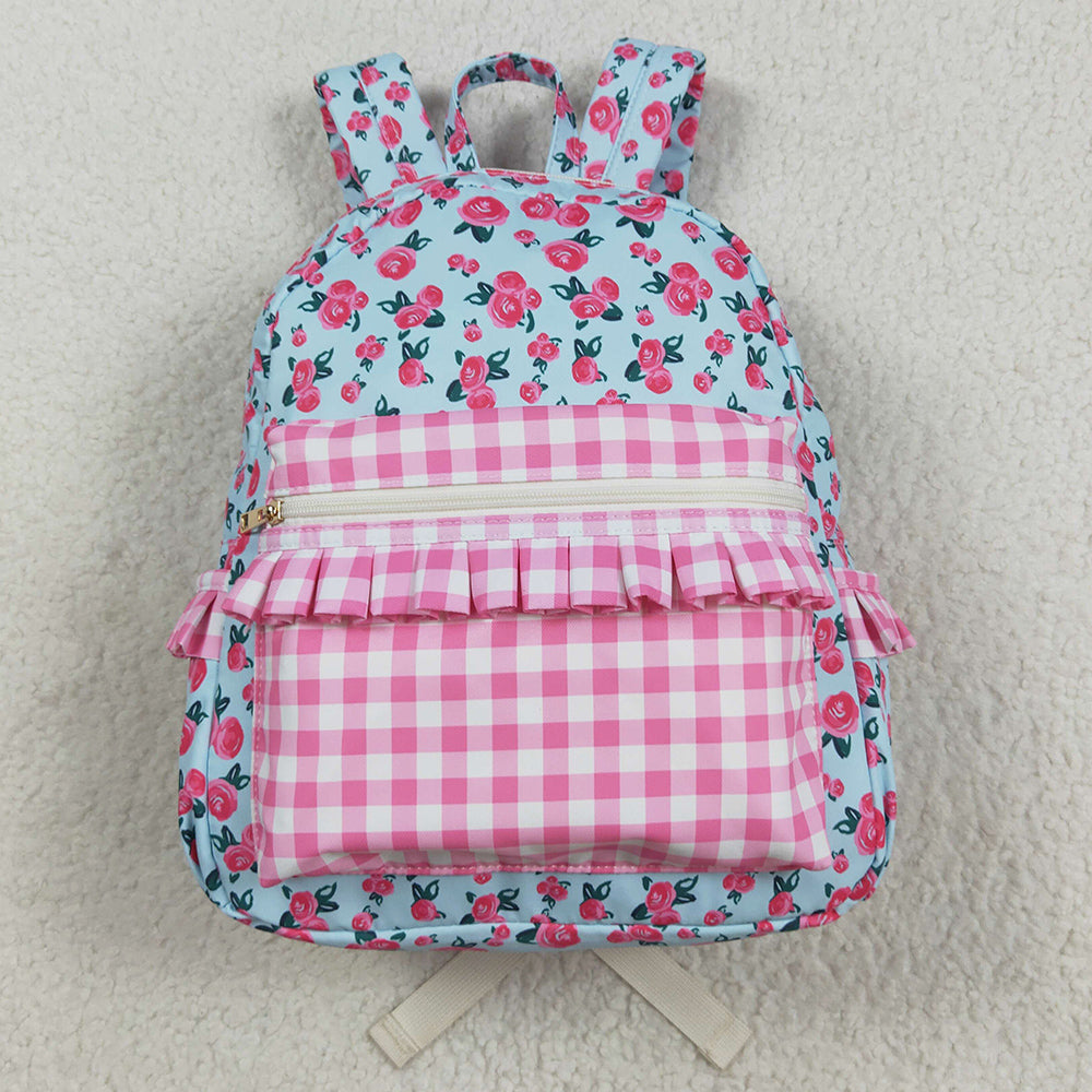 Baby Kids Girls Backpacks Pink Flowers Checkered Backpack Zip Back Bags BA0217 8.9