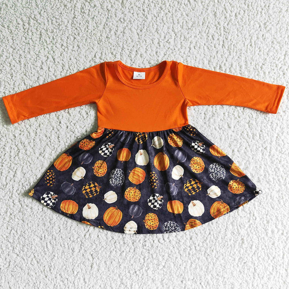 Boutique Baby Girls Dress Long Sleeve Punpkin Print Halloween Girl Dress GLD0011