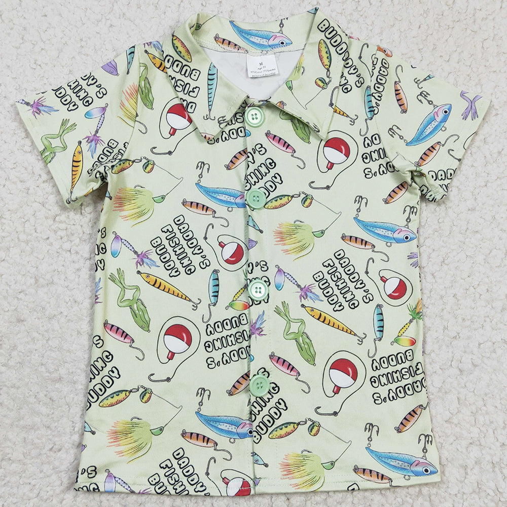 Boutique Boys T-shirt Button Design Fish Print Cute Boys Clothes Top BT0125