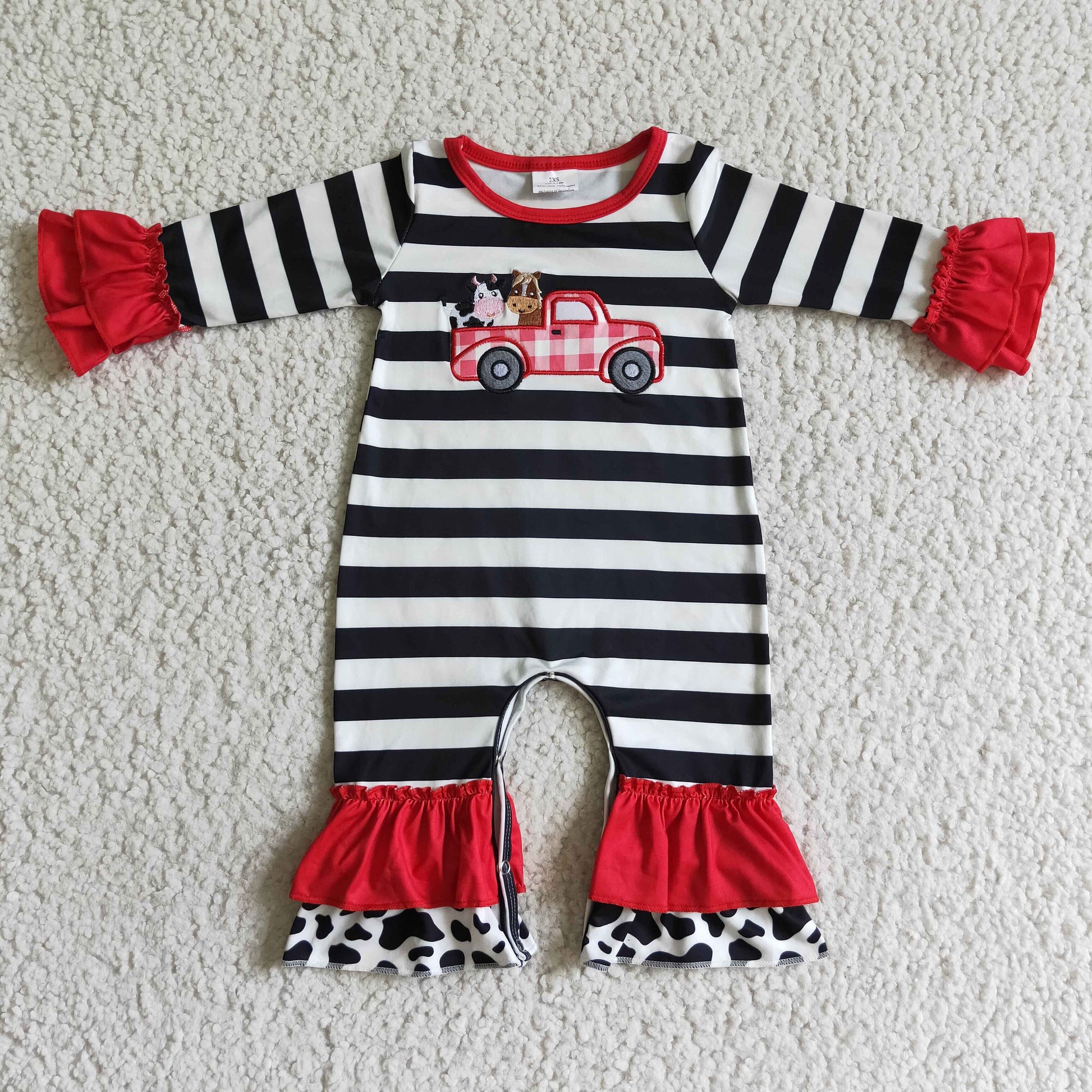 Boutique Girls Rompers Farm Embroidery Fall Baby Romper LR0015 10.3