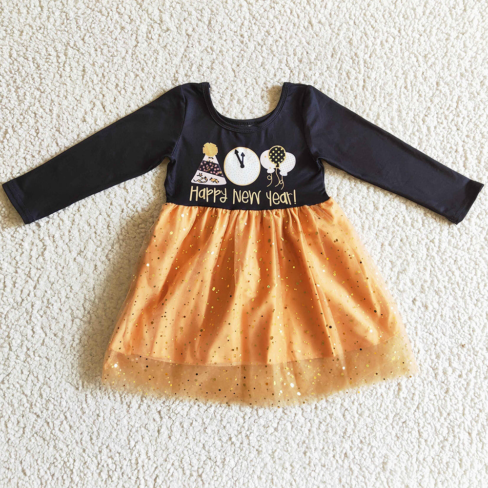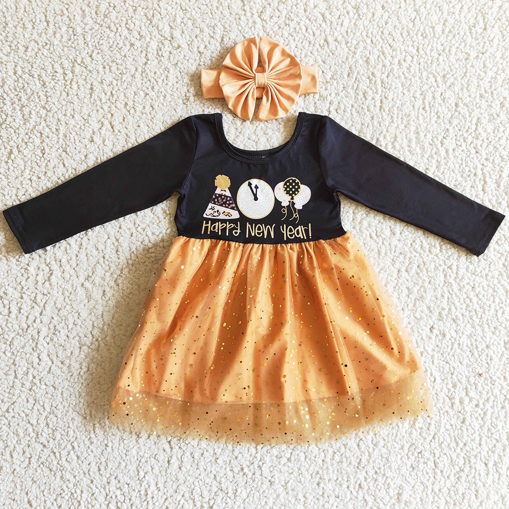 Boutique Girls Dress with Bow for Happy New Year GLD0138